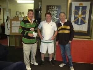 Ross and Stuart perform solidly and win the first semi but there is a lot of interest is in the second. There is a 63 handicap difference between the pairings and so we see the largest handicap possible at work. David and Wayne hog the service end and with nary a mistake take it out. The finals were always going to be close. Stuart seems to be playing every day and Ross has a formidable left hand serve. Wayne and David lead most of the way but the Troon/Strange combination surge at the end to take out the Championship. Congratulations guys.