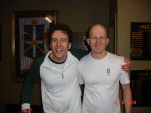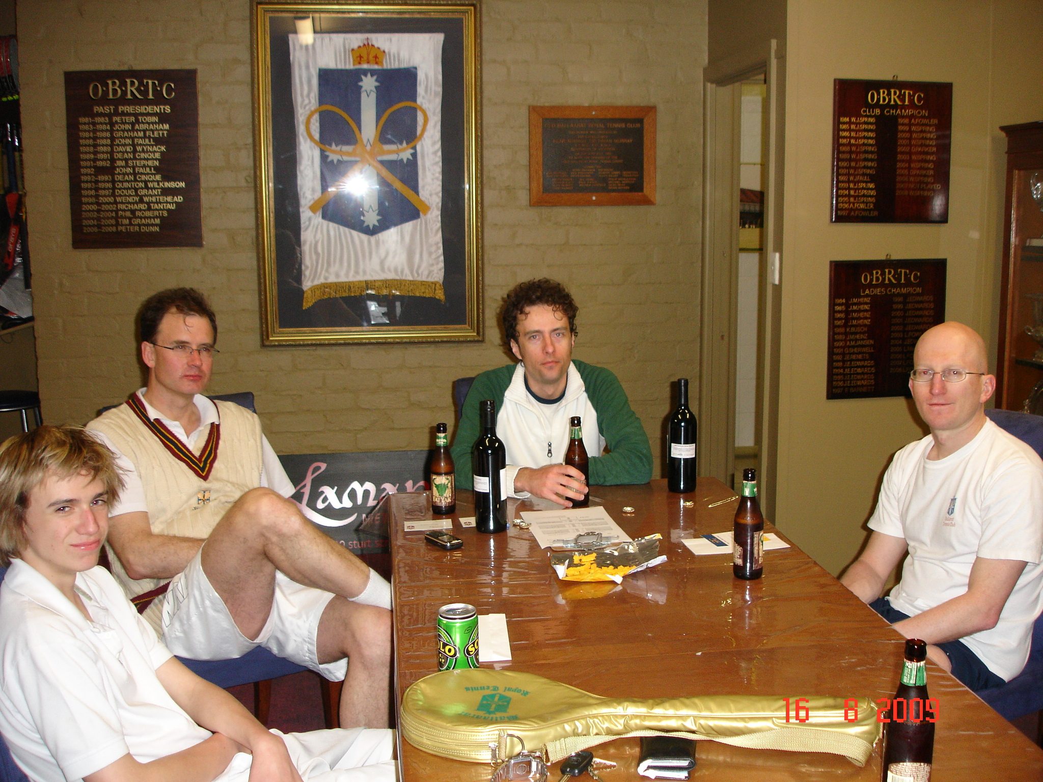 | The Doubles match of the evening was also a ‘nailbiter’. In another close result Mark and Tim won this as well…7/6 this time.